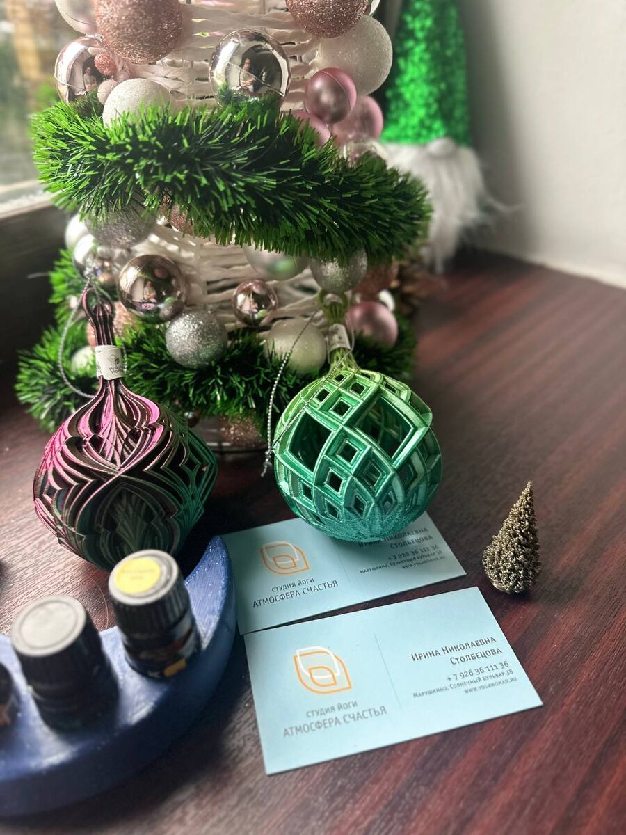 Вот такие подарочки в виде новогодних Шариков, подставки для эфирных масел 5 мл, и маленькой очаровательной елочки наша студия получила и