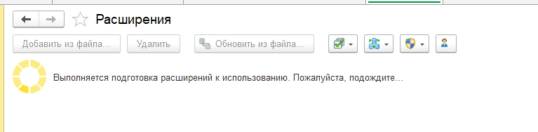 Завис процесс подключения расширения в конфигурацию 1С "Комплексная автоматизация 2.5"