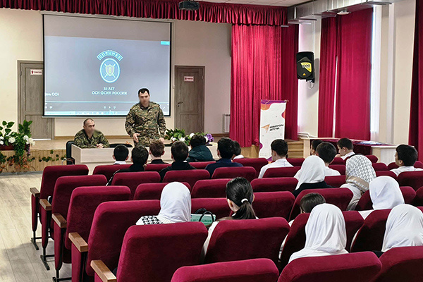 В рамках патриотического воспитания и профессиональной ориентации молодежи сотрудники Отдела специального назначения «Орел» УФСИН России по Республике Дагестан встретились с учащимися старших классов средней общеобразовательной школы № 41 им. Э.Р. Багирова. Мероприятие сочетало в себе «Урок мужества» и знакомство с возможностями построения карьеры в уголовно-исполнительной системе. Встреча началась с «Урока мужества». Бойцы спецподразделения поделились со школьниками своими историями о службе, значении физической подготовки и стойкости, примерах героизма и преданности долгу. Также они рассказали о важности крепкой дружбы и взаимной поддержки в коллективе. Для наглядности был показан видеоролик о деятельности ОСН ФСИН России. Школьники узнали, что такое профессиональный долг и какую ответственность несут те, кто защищает закон. Однако на этом разговор не закончился. Гости подробно рассказали о том, как можно самому стать частью этой мощной структуры. Они познакомили учащихся с ведомств