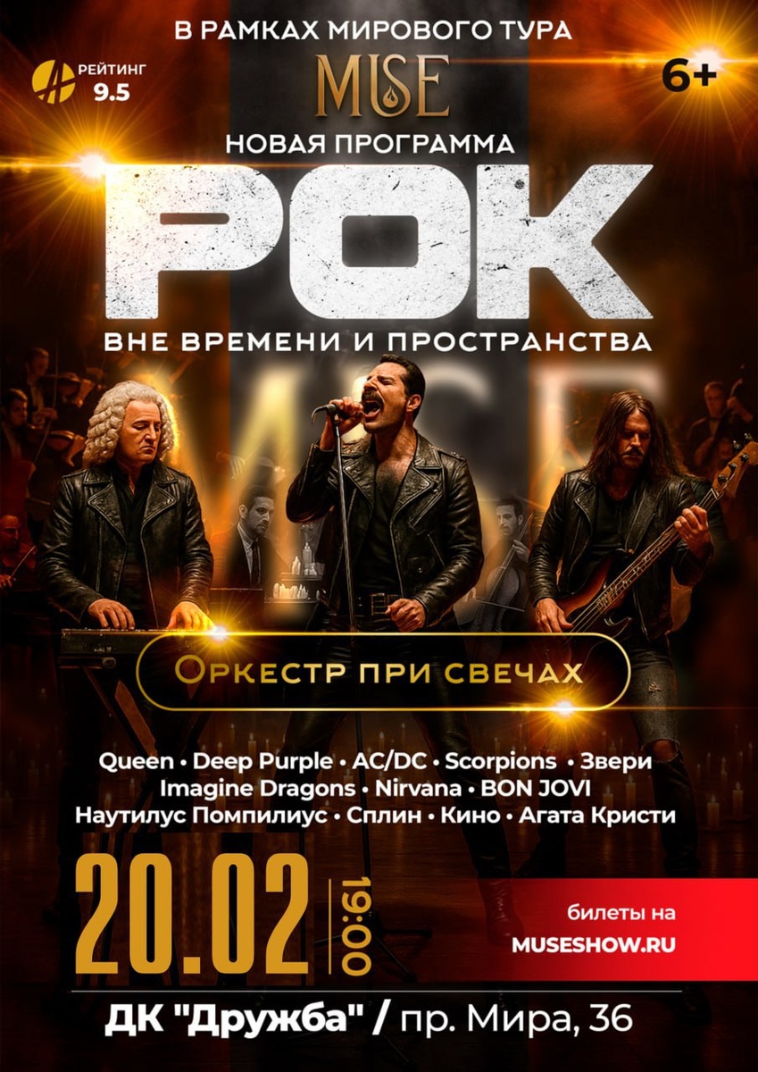 Оркестр при свечах MUSE 20 февраля в 19.00 Проект MUSE «РОК: вне времени и пространства» – это смелый и продуманный эксперимент, амбициозная коллаборация. Сочетание контрастов: рок-энергия с оркестровой утонченностью по-настоящему притягивают. Каждая нота обретает новую глубину, а смелая музыка наполняется теплом свечей и атмосферой камерного звучания. Станьте и вы свидетелем этого яркого события! Купить билеты можно на сайте оркестра⤵️ https://museshow.ru/ust-ilimsk-20-fevralya/?utm_source=telegram&utm_medium=%D0%93%D0%94%D0%9A+%22%D0%94%D0%A0%D0%A3%D0%96%D0%91%D0%90%22+%D0%B3.+%D0%A3%D1%81%D1%82%D1%8C-%D0%98%D0%BB%D0%B8%D0%BC%D1%81%D0%BA&utm_campaign=-1001330736853&utm_term=2025_11_28_19_56&utm_content=359098809