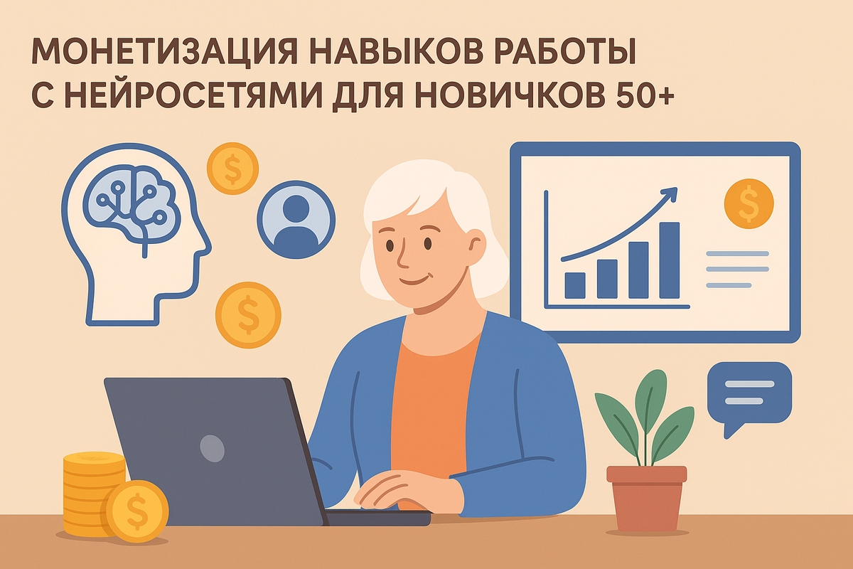 В цифровую эпоху возраст перестает быть ограничением для освоения новых технологий. Напротив — жизненный опыт, профессиональные контакты и глубокое понимание людей становятся значимыми преимуществами. Особенно это актуально при работе с нейросетями, где важна не только техника, но и умение понимать запросы клиентов. Это руководство поможет начинающим пользователям 50+ разобраться, какие услуги действительно можно оказывать с помощью нейросетей и как постепенно выйти на стабильный доход. 1. Креативные услуги с быстрым стартом 📌Создание аватаров и профильных изображений Это один из самых доступных способов начать зарабатывать, освоив базовые инструменты генерации и ретуши изображений. Почему это работает: высокий спрос в соцсетях; невысокий порог входа; возможность быстро собрать портфолио. Цены на рынке: комплект из 3–5 изображений: 100–800 рублей; доход при 15–30 заказах в месяц: 10–25 тысяч рублей. 📌Реставрация и колоризация старых фотографий Особенно востребованный формат среди лю
