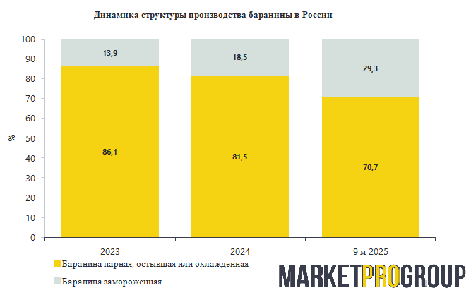 На российском рынке баранины в 2025 году замороженная продукция продолжает упрочивать свои позиции