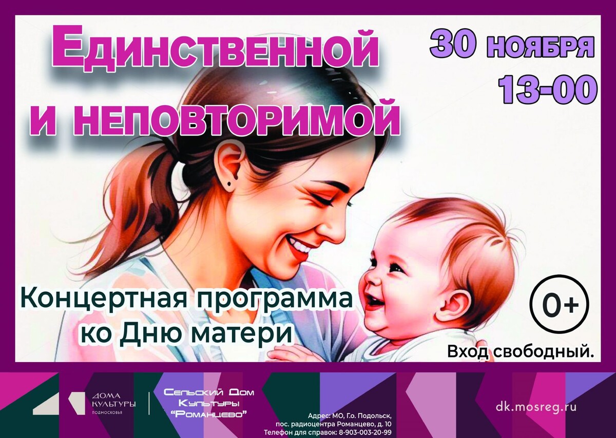 ✨ Концерт ко Дню матери «Единственной и неповторимой» 🩷Зрителей ждёт захватывающее путешествие в мир творчества и вдохновения. Каждое выступление пропитано душевностью и нежностью, а атмосфера праздника станет настоящим подарком для ваших сердец! 🚫 Возраст: 0+ 📆 30.11.2025 🕒 13:00 🏢 Дом культуры "Романцево" 📍 г.о. Подольск, посёлок Радиоцентра Романцево, 10 💰 Вход свободный❗️ ⭐Поддержать канал голосом 🍰Где поесть в Подольске ✅ Мероприятия Подольск https://dzen.ru/id/66ed500f7b5671493eca3fd6 http://vk.com/podolsk_events http://dzen.ru/podolsk_events