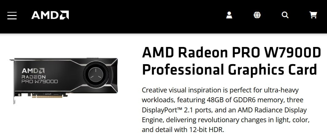 AMD представила видеокарту Radeon PRO W7900D — упрощённую версию W7900 с пониженной частотой Boost
