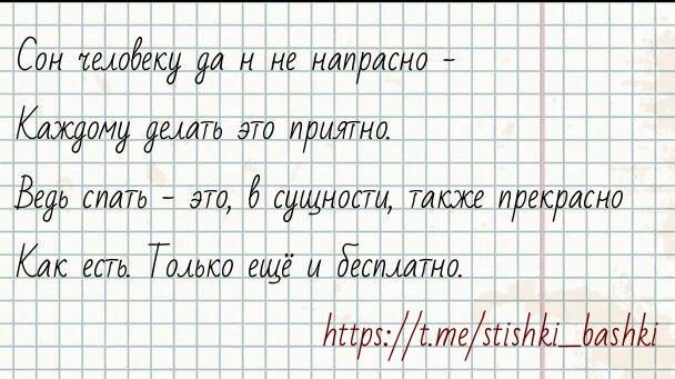 Про сон #сон #еда #диета #стишкиизбашки Стишок каждый день для настроения @stishki_bashki 📹 - видеостишки тут 👈 🙊 - а тут можно комментировать 👈 Поделитесь стишком с друзьями