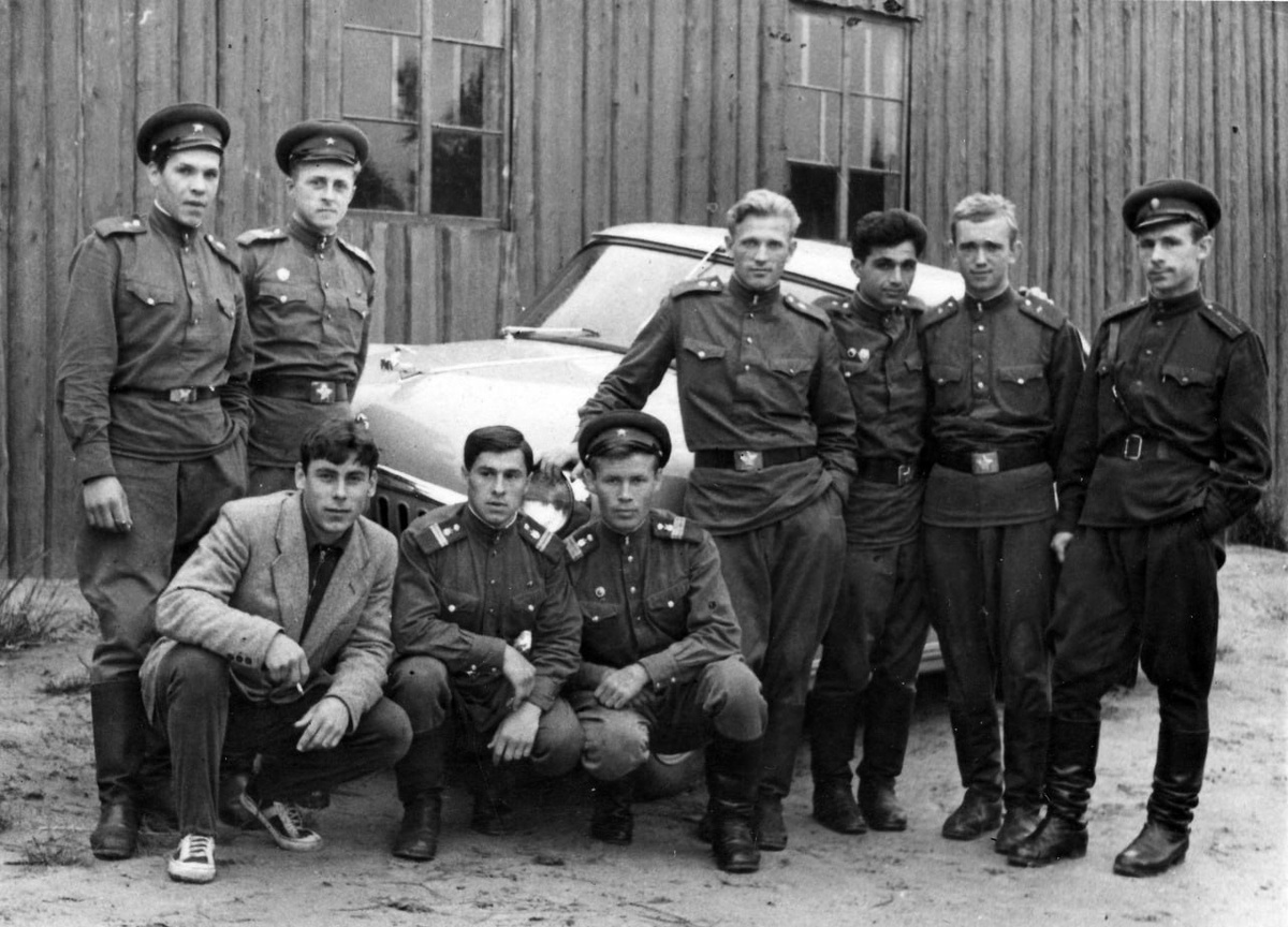 Группа военнослужащих инженерных войск на фоне ГАЗ-21 "Волга" с оленем! Источник: отсканированная фото из личной коллекции. #фото #ГАЗ #инженерные_войска #Советская_армия