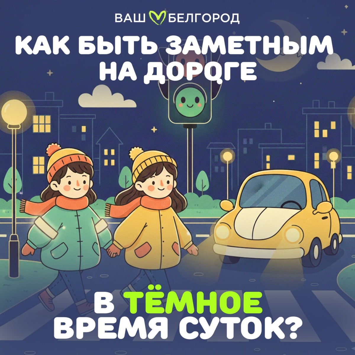 Вы же знаете, как сильно мы переживаем за каждого нашего подписчика? 🥹 Именно поэтому мы продолжаем нашу рубрику #полезные_советы! Сегодня мы расскажем о том, как быть заметным на дороге даже в тёмное время суток. 💡Местные власти ограничивают работу сетей уличного освещения в Белгороде. Именно поэтому мы решили подготовить для вас карточки, которые точно будут полезными для каждого из вас. Ставьте — ❤️, если вам понравилась эта публикация Не забудьте подписаться на наш канал ❤️