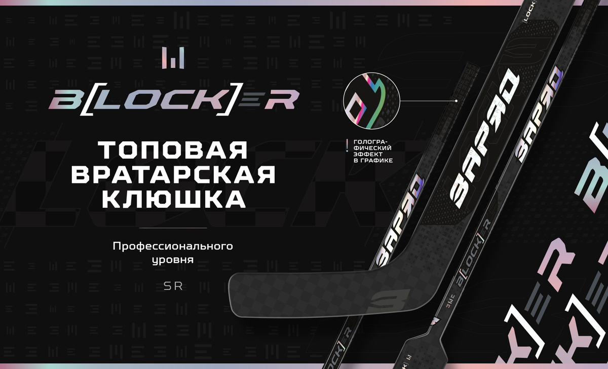 «ЗаряД BLOCK-R» — топовая вратарская клюшка, которая на сто процентов выполнена из высококачественного углеволокна с внешними слоями из 18К карбона. Вратарские клюшки «ЗаряД» обладают лёгкой конструкцией и при этом повышенной жёсткостью, они устойчивы к вибрации. «BLOCK-R» отличаются усиленной зоной контроля при отбивании.