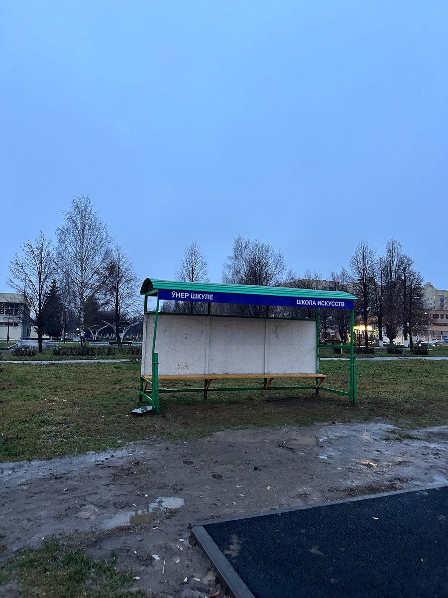 Улица Пионерская. Ремонт тротуаров закончили месяца два назад, а остановку так и не вернули на место. В плохую погоду даже спрятаться негде!