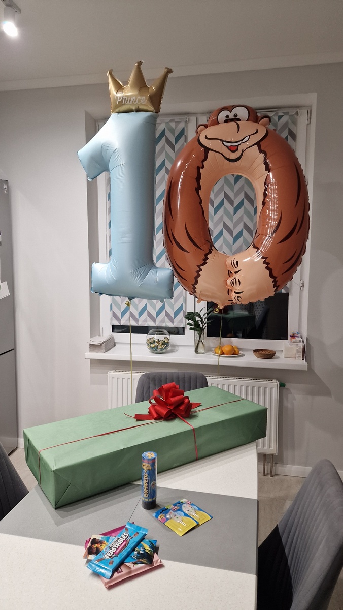 Вчера у Ромы был первый юбилей. Пишу это на следующий день и чувствую себя так, будто отмечала праздник неделю. Ничего не шевелится: ни руки, ни ноги, ни мозг. Но оно того стоило. Традиция шаров и маленького чуда Каждый год поздним вечером я украшаю кухню шарами — фигурка и цифра. В этом году фигурка не поместилась в бюджет праздничного декора, потому что возраст впервые стал двузначным. Пришлось брать только цифры — зато какие! Рома всегда говорит: «Надо проснуться ночью и посмотреть, какие шары ты купила!» Никогда, конечно, не просыпается — но ждёт, как Новый год. По традиции задули свечки на домашнем торте, а завтрак в этот раз состоял из пирожных Лабубу — крестная постаралась. Подарки, которых вроде бы и не планировалось Основным подарком была поездка в Турцию в начале ноября. Мы честно сказали, что «деньги закончились, праздника и других подарков не будет». Но если вы мама, то понимаете: так не работает. И деньги всё равно нашлись. Мы, родители, подарили синтезатор. Бабушка с деду