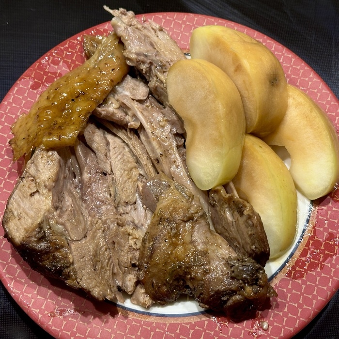 В качестве гарнира особенно хорошо пошло яблко мочёное. Просто огонь сочетание получилось.