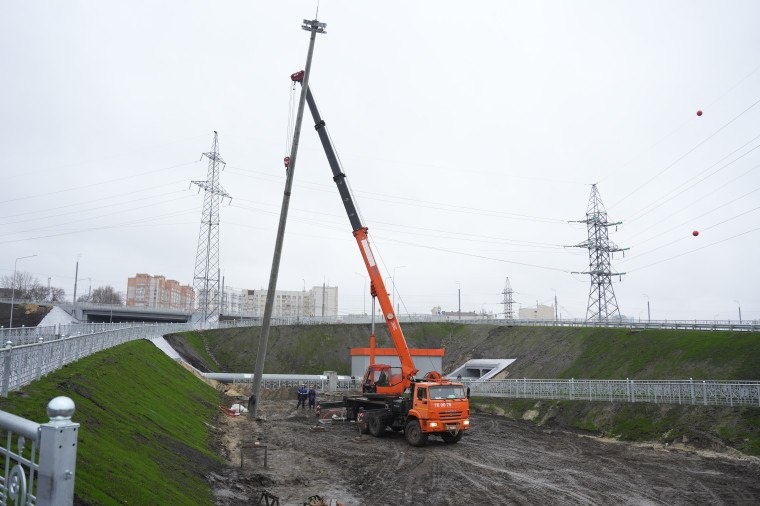 На подъезде к «минаевскому» мосту установили 25-метровую световую мачту