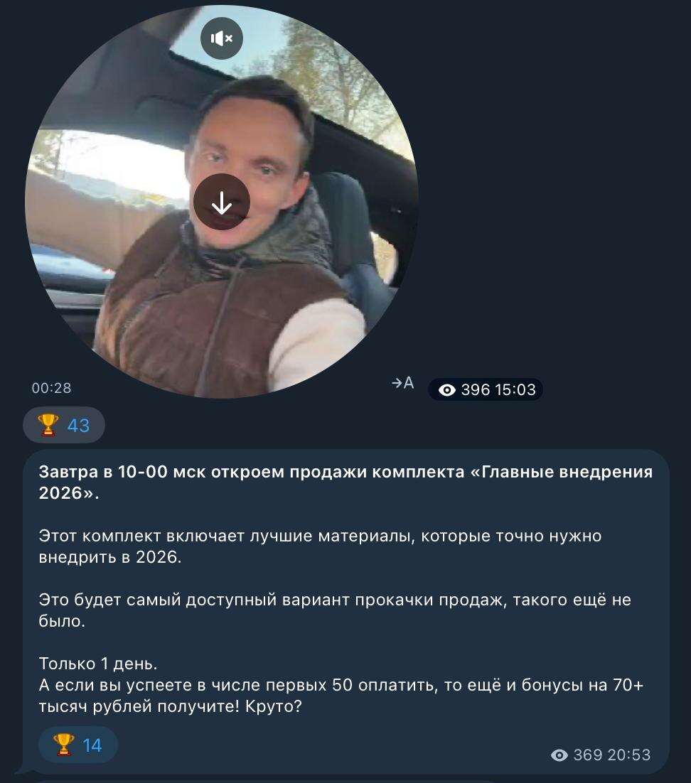 Сегодня мы сделали рекорд продаж в рамках черной пятницы – за 50 минут разобрали все 50 первых мест на комплект «Главные внедрения для рекордов продаж в 2026». Все это открыто транслировалось в канале «Черной пятницы». Самая быстрая черная пятница. И она ещё продолжается…