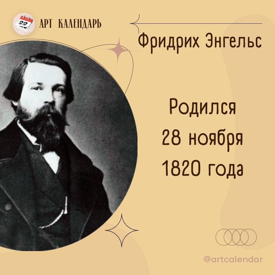 28 ноября 1820 года родился Фридрих Энгельс, один из основоположников марксизма, философ-самоучка, соратник, спонсор и друг Карла Маркса. ⛪️В своей молодости основатель атеистического марксизма исповедовал христианство и был приверженцем протестантизма. 🏭Он осуждал капитализм, несмотря на то, что сам владел ткацкой фабрикой, унаследованной от отца. ✍️Именно Фридрих Энгельс завершал работу над известным трудом «Капитал». Карл Маркс успел выпустить только первый том, второй и третий тома после его смерти редактировал Энгельс, используя черновики друга. 💬Одним из любимых поэтов для Фридриха Энгельса был Александр Пушкин. В разговорах с русскими эмигрантами он часто цитировал поэму «Евгений Онегин». 🍷На вопрос о смысле счастья Фридрих Энгельс отвечал, что это бутылка вина «Шато Марго» 1848 года. 💍Фридрих Энгельс отрицал институт брака и никогда не был женат. #день_в_истории АртКалендарь подписаться ✍️ Пожалуйста, проголосуйте ✅