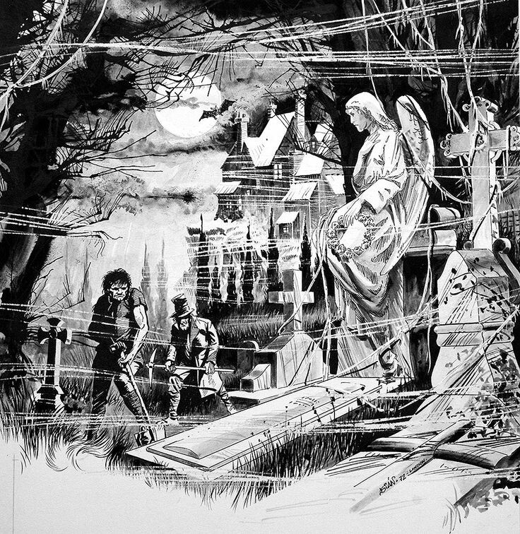 - Вторая кульминация (в прошлом): Во время похищения тела на кладбище Бленкорс в мешке оказывается не тело фермерши, а труп Грея, что вызывает мистический ужас у обоих героев.