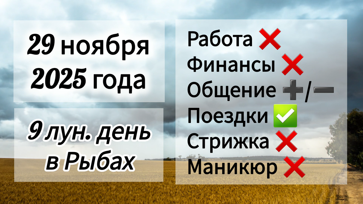 В первую половину дня лучше отказаться от любой ответственной и кропотливой работы, не исключены фатальные ошибки и потери, вызванные собственной невнимательностью. На преодоление трудностей может уйти больше сил, чем обычно. Даже в домашних делах не стоит перетруждаться. В настроении возможны эмоциональные качели, поэтому лучше уходить от плотного общения, чтобы не попасть в конфликтную ситуацию. Также люди склонны к обману. После 13 часов 40 минут наступает 10 лунный день. Энергии становится больше, но все же недостаточно для активной работы. Удача будет лишь на стороне людей творческих профессий и тех, кто работает с информацией. Во второй половине дня на первый план выходят семейные отношения и кровные узы. Ни в коем случае нельзя ругаться с родственниками. Наоборот, нужно посещать родных и устраивать семейные посиделки.