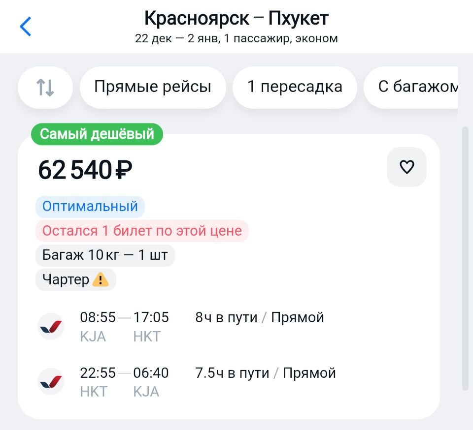 Стоимость на новогодние чартеры на Пхукет. Дорого? Отнюдь. Гляньте хотя бы, что предлагает его величество на регулярке. https://aviasales.tpm.lv/zD5IxQHz #HKT @KJA