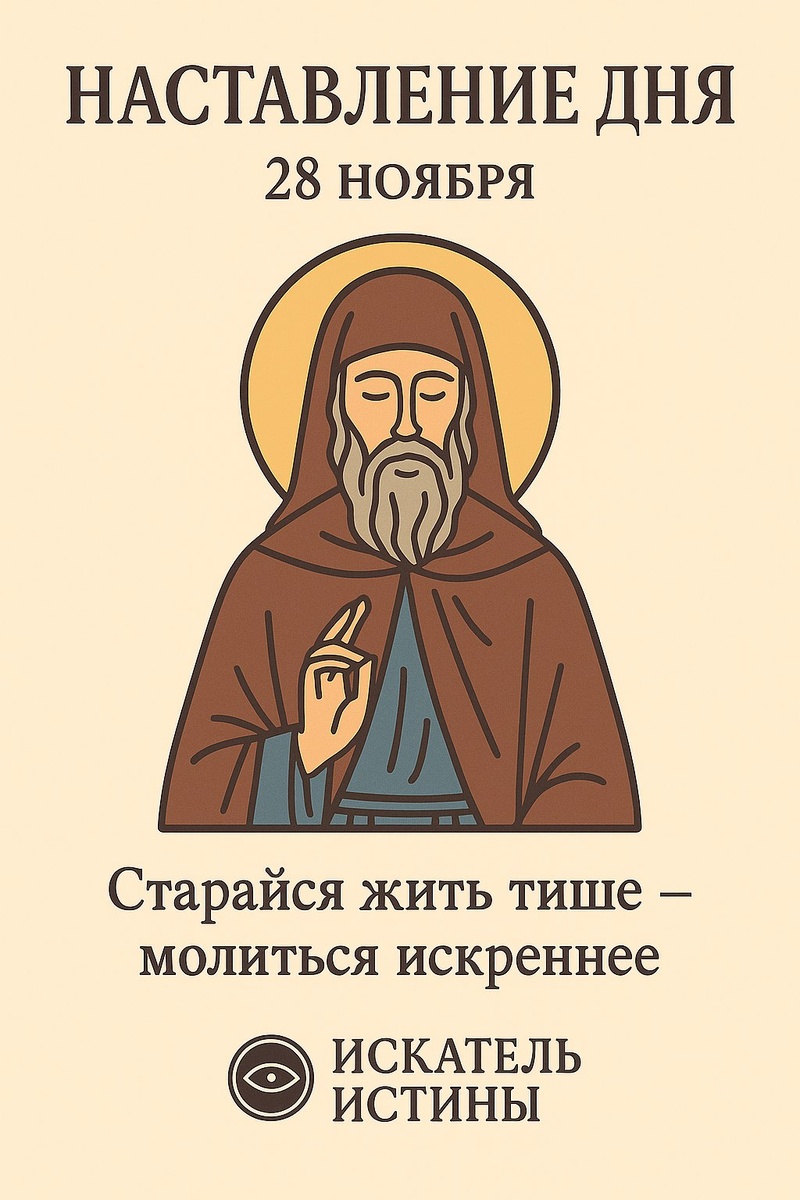 ☦️ Наставление дня — 28 ноября Память преподобного Паисия Величковского Преподобный Паисий учил хранить мир в душе и возвращаться к Богу через молитву сердца. Он напоминал: тишина, смирение и внимание к себе открывают путь к истинной духовной жизни. Пусть и твой день будет наполнен внутренним покоем. Старайся жить тише, молиться искреннее и сохранять сердце чистым — и благодать Божия не оставит тебя.