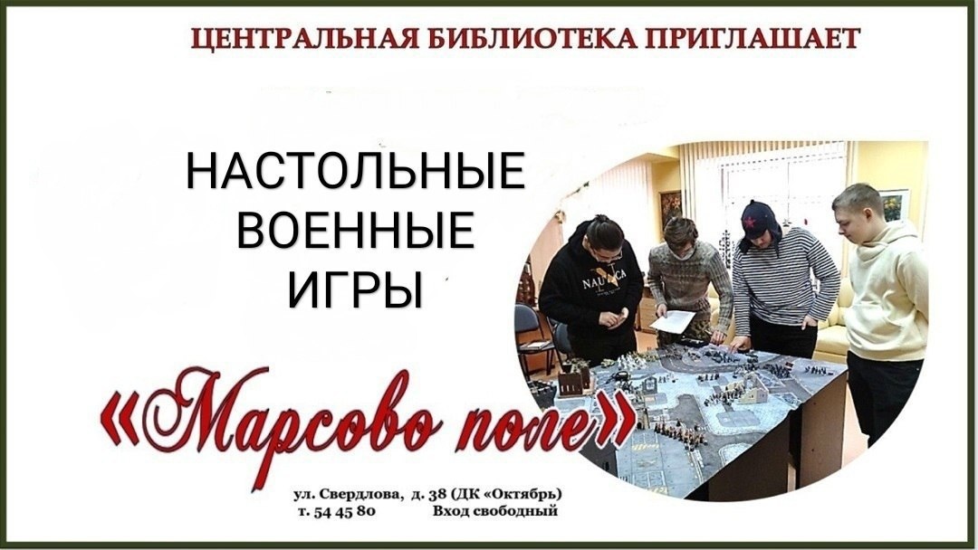 ✨ Настольные военные игры "Марсово поле". 👉Играем по воскресеньям с 13:00 до 14:00 ♟️🪖Изучаем разные игровые системы, сами изготовливаем игровой ландшафт и даже красим фигуры. 🚫 Возраст: 14+ 🏢 Центральная библиотека 📍 г. Подольск, ул. Свердлова, д. 38 💰 Вход свободный❗️ ⭐Поддержать канал голосом 🍰Где поесть в Подольске ✅ Мероприятия Подольск https://dzen.ru/id/66ed500f7b5671493eca3fd6 http://vk.com/podolsk_events http://dzen.ru/podolsk_events