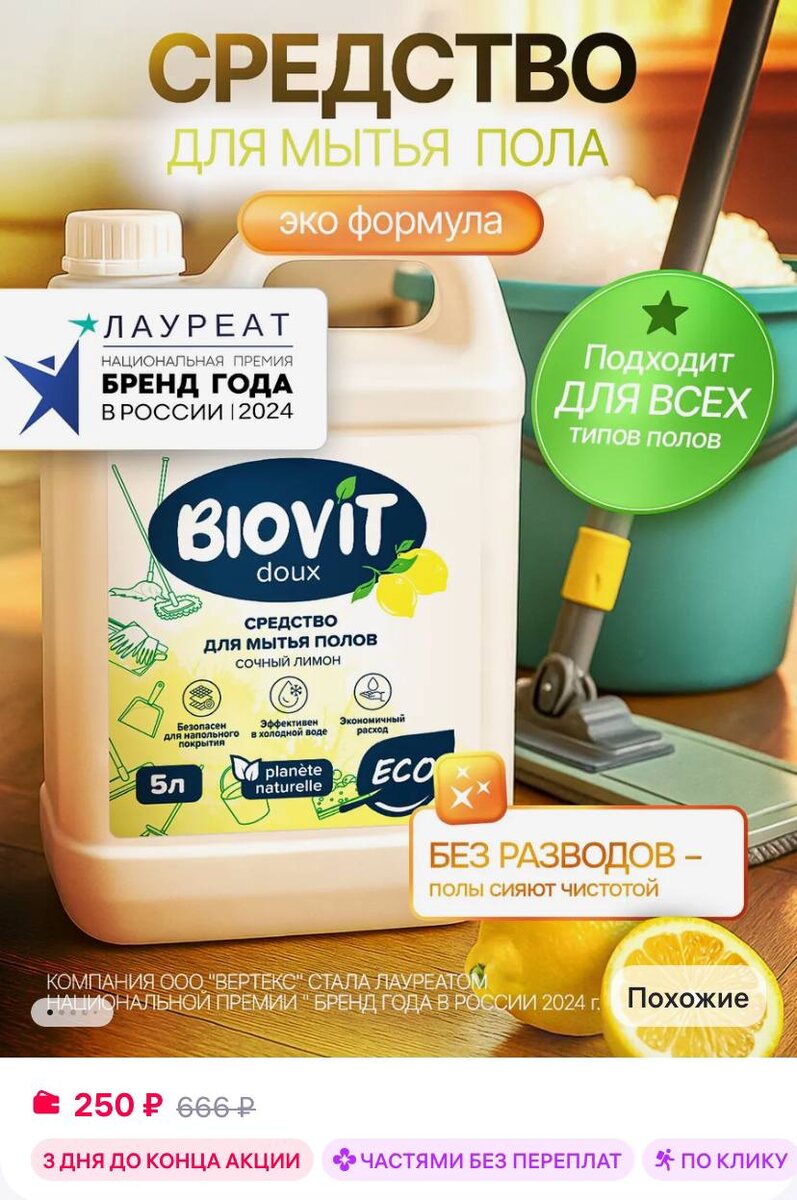 BIOVIT Средство для мытья полов ламината 5 литров https://www.wildberries.ru/catalog/535774919/detail.aspx?size=737997157 ✅ Подписаться 🔣 Бот с промокодами
