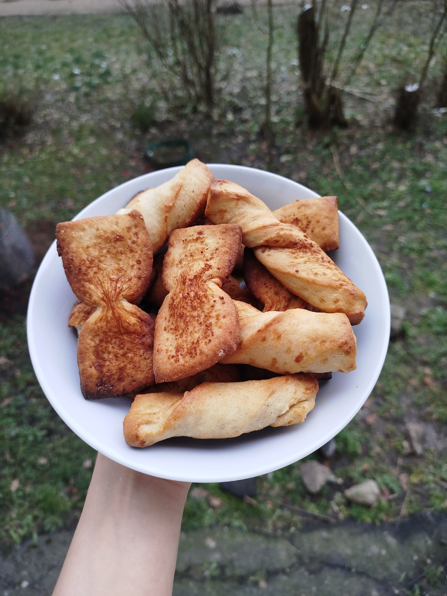 Рецепт печенья на рассоле Мука 400 г. Растительное масло без запаха 100 мл. Сахар 50 г. + 50 г. для посыпки печенья с верху Рассол с помидор или огурцов 200 мл. Ванильный сахар 1 пакетик Разрыхлитель теста 10 г. В миску добавляем 200 мл рассола+ растительное масло 200 мл+ 100 гр сахара+ в муку 400 гр отправляем разрыхлитель теста 10 гр и добавляем частями в миску. Дать постоять тесту 10 минут. Затем делим тесто на две части. Припыляем стол мукой. Раскатываем чтобы тесто было пол сантиметра в толщину. Нарезаем прямоугольники, выкладываем на противень. Каждую печеньку присыпаем сахаром+ корица. Потом в середине сжимаем и получается форма бантиков. Выпекать в предварительно разогретой духовке на 180 °, 10-15 минут. Приятного аппетита друзья 🤗💙💛💚💜❤️