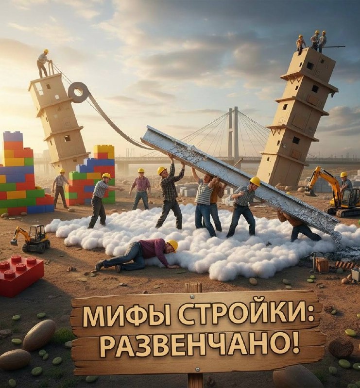 МИФ 6. «Дешёвые материалы — то же самое, только без переплаты за бренд» ❌ Неправда. Дёшевые смеси и материалы часто: — дают усадку — трескаются — имеют меньшее содержание цемента или добавок ✔️ Правда: бренд влияет не на «имя», а на стабильность качества. 🏗️ МИФ 7. «Если фундамент залит, дом можно строить сразу» ❌ Неверно. Бетону нужно минимум 28 дней, чтобы набрать расчётную прочность. ✔️ Правда: Холод, жара, дождь, состав бетона — всё влияет на сроки. 🏗️ МИФ 8. «Если дом из кирпича — он всегда тёплый» ❌ Зависит от кладки. Кирпич сам по себе холодный материал. ✔️ Правда: Дом тёплый не из-за кирпича, а из-за утепления и правильного пирога стены. 🏗️ МИФ 9. «Монолитный дом не трескается» ❌ Трещины бывают у всего — даже у железобетона. Причины: усадка, ошибки в опалубке, неравномерное армирование. ✔️ Правда: Контролируемые трещины — нормальная часть проекта. 🏗️ МИФ 10. «Сухая стяжка хуже, чем мокрая» ❌ Миф из прошлого. Современная сухая стяжка не уступает по прочности. ✔️ Правда: