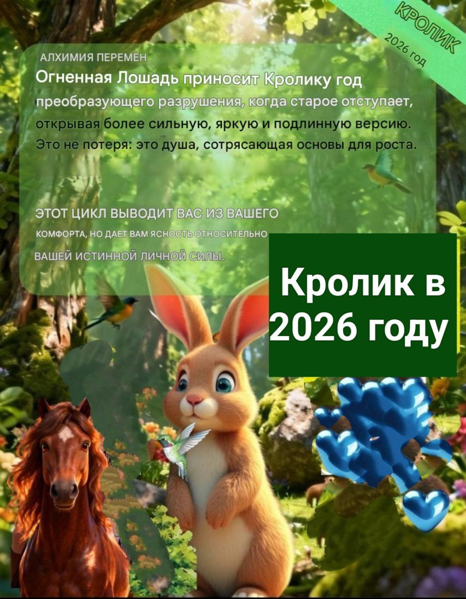 Огненная Лошадь 🐎🔥 приносит Кролику 🐰 год преобразующего астрологического разрушения, когда старое отступает, открывая более сильную, яркую и подлинную версию. Это не потеря: это опыт для души, избавиться от чего-то старого, отжившего или выучить полезный, хотя и болезненный урок.