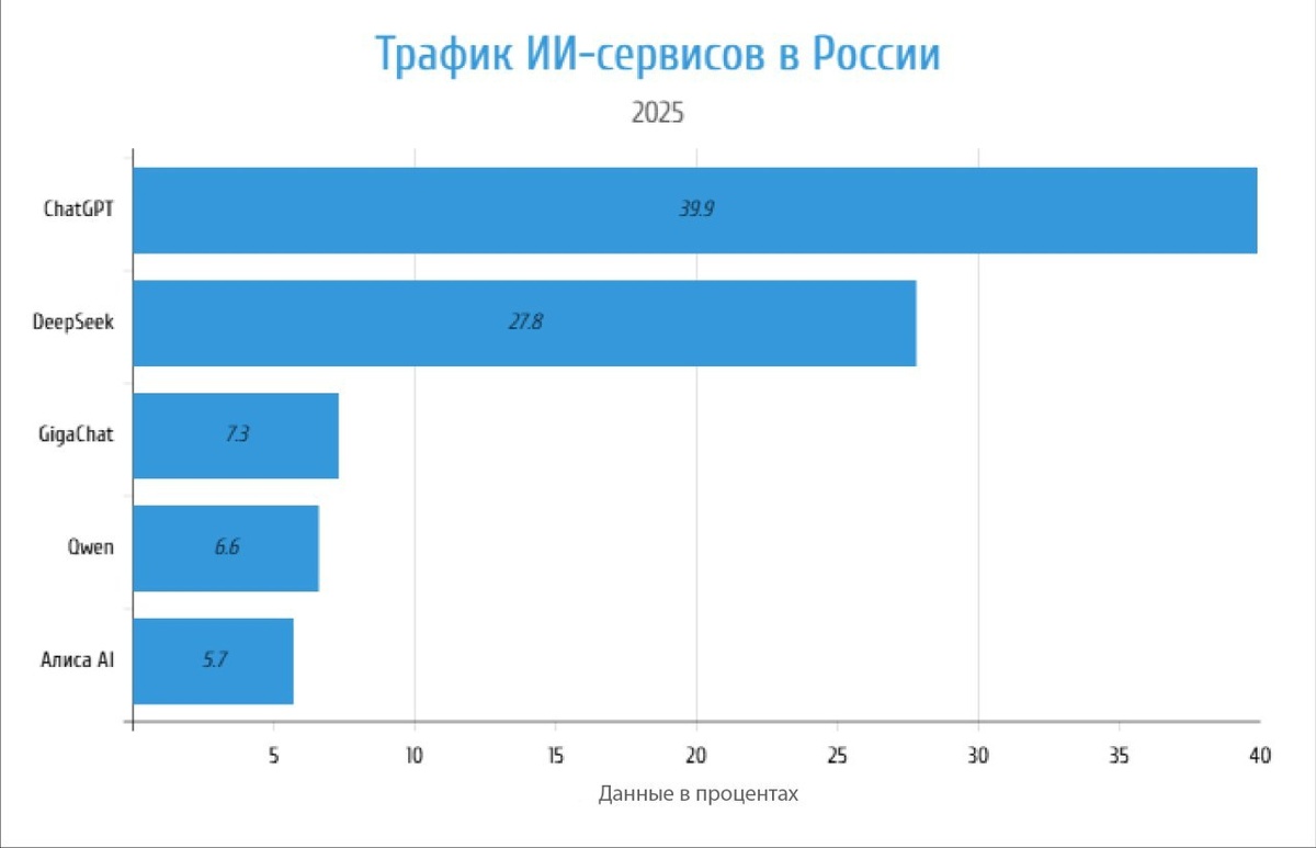 Трафик ИИ-сервисов в РФ за 10 месяцев вырос в 6 раз