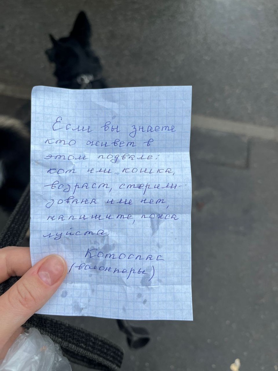 Вот такую записку нашла опекун возле дома на ул. Бобруйская 18к1. Западный округ, район м. Молодежная. Это не дом под снос, поэтому что автор имел ввиду и что хотел, непонятно. Вы если записки пишете)) то обратный номер не забывайте оставлять. Опекун вышла с нами на связь. Но кто писал записку мы не знаем. Откликнитесь! Звоните 89262311054