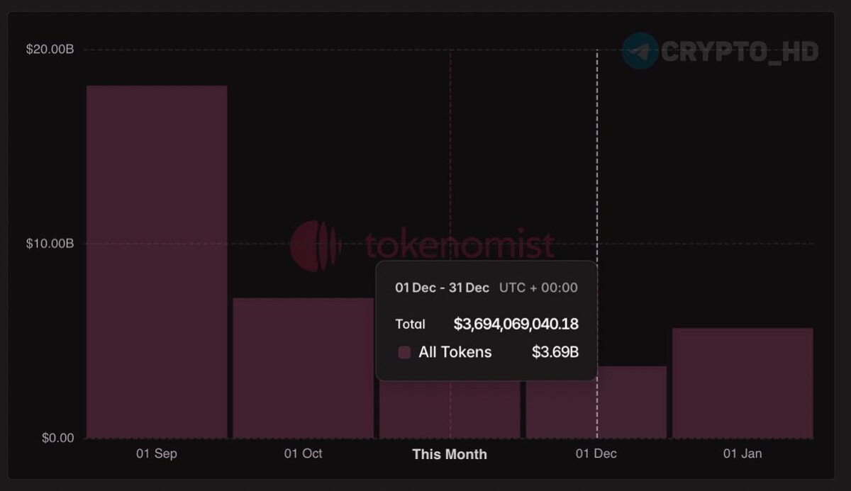 #анлок 🔒 В декабре разблокируют альткоины на $3,700,000,000 – Tokenomist Crypto Headlines