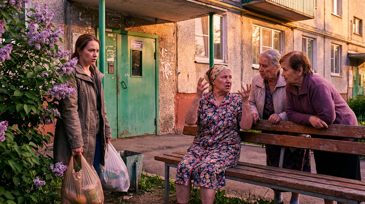 Подъехав к дому, Марина увидела, что машина мужа уже стоит у подъезда. Она вышла, поправила платье и направилась к входу. У подъезда, на своей любимой лавочке, сидел неизменный «совет старейшин» – три соседки: Тамара Ильинична, грузная женщина с командным голосом, сухонькая баба Шура и относительно молодая, но невероятно любопытная Людмила с первого этажа.