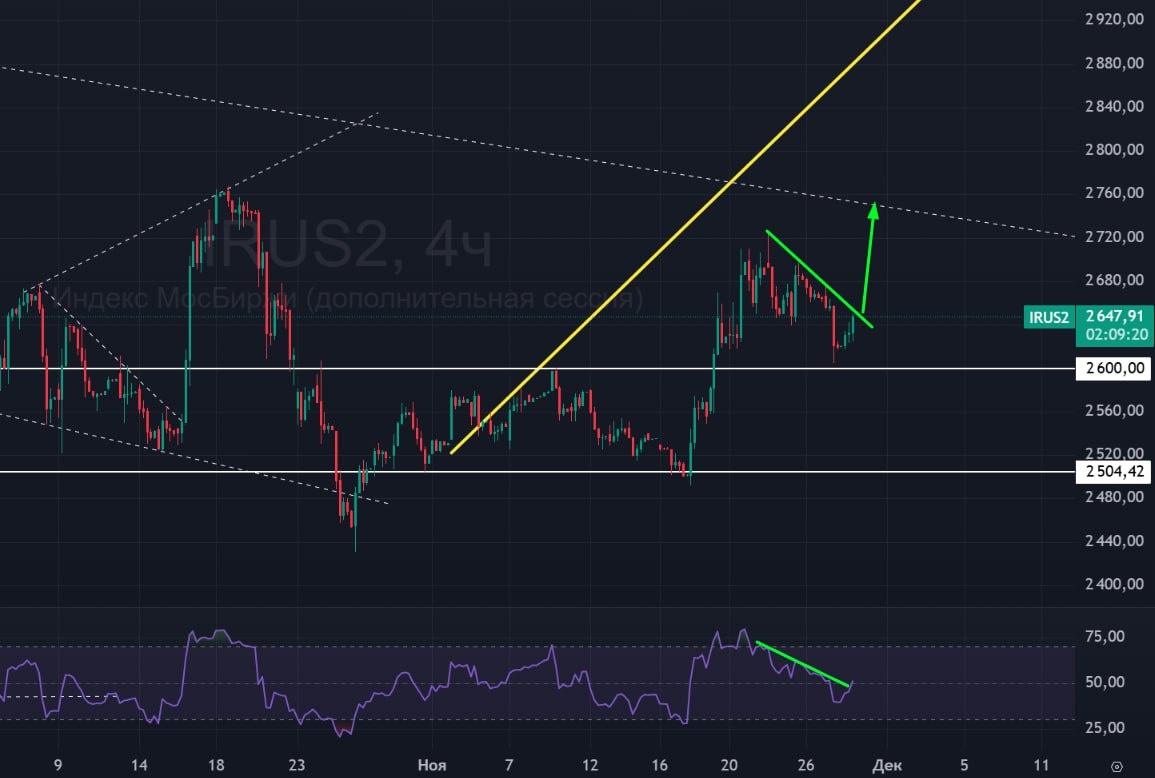 π¦ ΠΠ½Π΄Π΅ΠΊΡ ΠΠΎΡΠ±ΠΈΡΠΆΠΈ π’ Π‘Π΅Π³ΠΎΠ΄Π½Ρ ΠΏΠΎΠ»Π½ΠΎΡΡΡΡ ΠΎΡΡΠ³ΡΠ°Π»ΠΈ Π²Π΅ΡΡ Π²ΡΠ΅ΡΠ°ΡΠ½ΠΈΠΉ ΡΠ»ΠΈΠ². Π‘Π΅ΠΉΡΠ°Ρ ΡΠ΅Π½Π° ΠΎΡΡΠ°Π½ΠΎΠ²ΠΈΠ»Π°ΡΡ Π½Π° Π»ΠΎΠΊΠ°Π»ΡΠ½ΠΎΠΉ Π½Π°ΠΊΠ»ΠΎΠ½Π½ΠΎΠΉ Π»ΠΈΠ½ΠΈΠΈ. ΠΠΎ RSI ΡΠΎΠΆΠ΅ Π΅ΡΡΡ ΡΠ°ΠΊΠ°Ρ Π»ΠΈΠ½ΠΈΡ, ΠΈ ΠΎΠ½Π° ΡΠΆΠ΅ ΠΏΡΠΎΠ±ΠΈΡΠ° Π²Π²Π΅ΡΡ