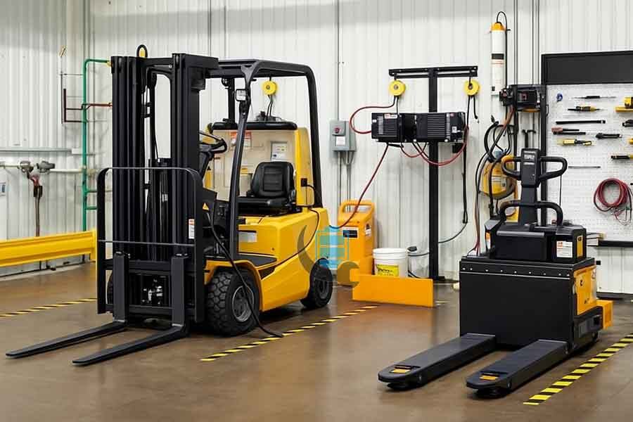 Продумайте, где вашим сотрудникам удобнее заряжать погрузчики. Плюс лития в том, что зарядные устройства не требуют специальной вентиляции – их можно поставить там, где удобно, хоть вдоль маршрутов движения или рядом с зоной отдыха персонала. Многие компании делают так: размещают зарядные станции около столовой или в зоне смены водителей, чтобы каждый перерыв техника быстро подзаряжалась. Главное – выделить безопасное место. Лучше, если это будет участок у стены или колонны, где есть розетки и куда можно аккуратно припарковать технику. Убедитесь, что рядом нет ничего воспламеняющегося, кабели не мешаются под ногами, а зона отмечена знаками. Например, рекомендуется высота потолка не ниже 5 м и не менее 5 м расстояния от других рабочих зон. Это перестраховка на случай перегрева или ЧП, но лишней безопасность не бывает.