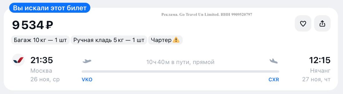 В этом году возобновились прямые рейсы во Вьетнам. Весной появились рейсы в Нячанг, а в ноябре и на остров Фукуок. Как только возобновляются прямые рейсы в ту или иную страну, туроператоры сразу формируют пакетные туры на этих рейсах. Отдых во Вьетнаме пользуется большой популярностью у туристов. Сейчас во Вьетнам можно улететь очень дешево. И пакетным туром, и своим ходом, т.к. попадаются очень дешевые билеты на самолет. Вот, например, билет (скрин ниже) на самолет за 9 500 р. на прямой рейс. Это очень дешево. А вот пакетный тур (скрин ниже) из Москвы на 10 ночей, который на двоих стоит всего 75 000 рублей. Включает в себя перелет прямым рейсом, проживание в отеле, трансфер, завтраки и страховку. Если мы находим такие туры и билеты, ссылками на них делимся в телеграм. Цены могут очень быстро меняться, т.к. аналитикой продаж в наше время занимаются программы, а не люди. Они очень быстро реагируют на изменение спроса. Если вы летите своим ходом, то отели можно забронировать на Яндекс Пу