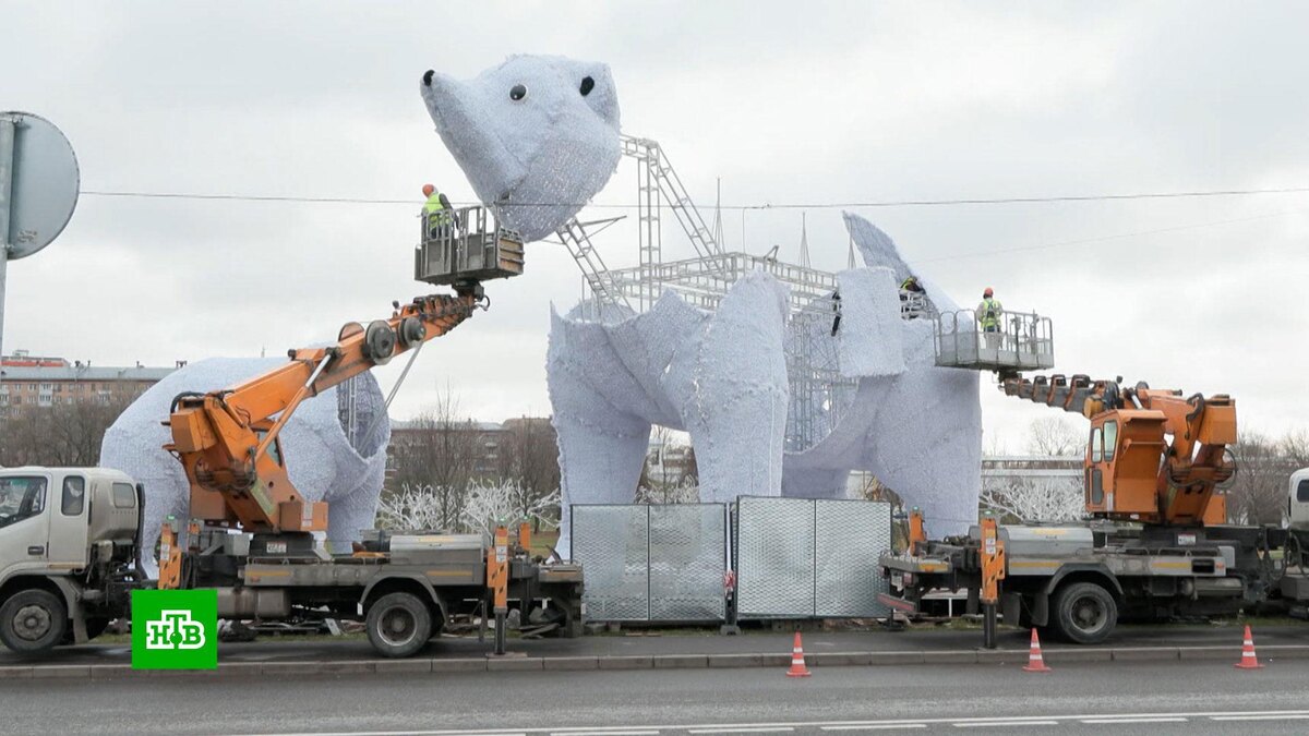 [ Смотреть видео на сайте НТВ ] В столичном районе Ростокино монтируют 300-метровую инсталляцию с белыми медведями. В парк «Ростокинский акведук» скоро вернутся белые медведи. Речь идет о световой инсталляции, полюбившейся москвичам и гостям столицы. Ее уже начали монтировать. Композиция длиной более 300 метров считается самой протяженной в Москве. Семейство полярных медведей, которых местные жители прозвали умками, украшает проспект Мира каждый год и уже стало символом предстоящих праздников. В этом году мишки предстанут в новом обличье — у фигур заменили мишуру, чтобы она была еще больше похожа на настоящую шерсть, а 20 тысяч метров светодиодных гирлянд создадут эффект полярного сияния. Дмитрий Сидорук, начальник отдела разработки специальных программ АО «ОЭК»: «Высота мамы-медведицы 10 метров, медвежонок — 5 метров. Оказавшись рядом с такими гигантами, ты как будто попадаешь в страну детства. В этом году вся композиция подверглась глубокой модернизации. Были обновлены ели, полностью