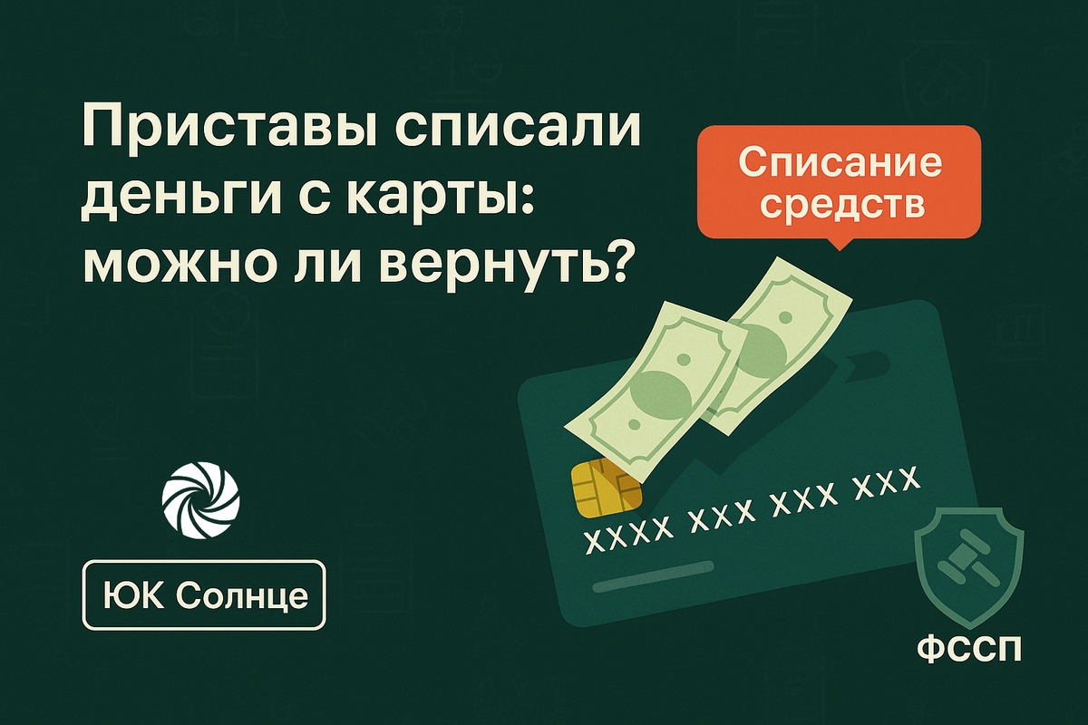 Ситуация, когда приставы внезапно списали деньги с банковской карты, знакома многим. Особенно болезненно это, если с карты ушла зарплата, пенсия или пособие, и других источников денег у человека нет. Важно понимать: во многих случаях часть средств можно вернуть, а единственный доход - защитить на будущее. В этой статье разберем, что делать шаг за шагом и когда имеет смысл обратиться к юристам «ЮК Солнце».
