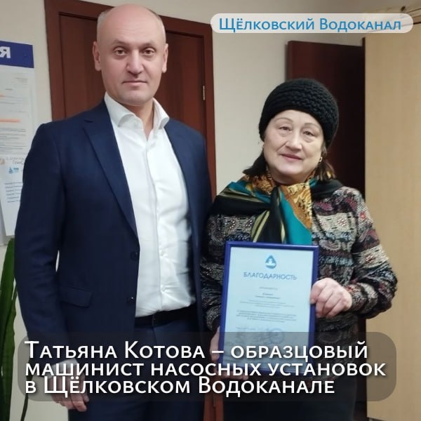 ✨ Татьяна Котова – гордость Щёлковского Водоканала! ✨ Сегодня мы чествуем Татьяну Андриановну Котову – образцового машиниста насосных установок, чья преданность и профессионализм служили примером для всех нас. По своему желанию Татьяна Андриановна приняла решение выйти на заслуженный отдых. За многолетний и добросовестный труд в системе водопроводно-канализационного хозяйства, образцовое выполнение служебных обязанностей генеральный директор ООО «Щёлковский Водоканал» Андрей Кононов лично вручил Татьяне Андриановне благодарность! 💐 "Спасибо Вам, Татьяна Андриановна, за Ваш вклад и преданность Щёлковскому Водоканалу! Желаем Вам крепкого здоровья и долгих лет счастливой жизни!" - отметил А. Кононов. 💖 Татьяна Котова рассказала случай на работе, который она запомнила на всю жизнь. Подробности этой истории. Подписаться🔵Вакансии🔵Личный кабинет 🔵Чат-бот #ЩёлковскийВодоканал #НашиЛюди #ЗаслуженныйОтдых #Благодарность #Профессионализм #Водоканал