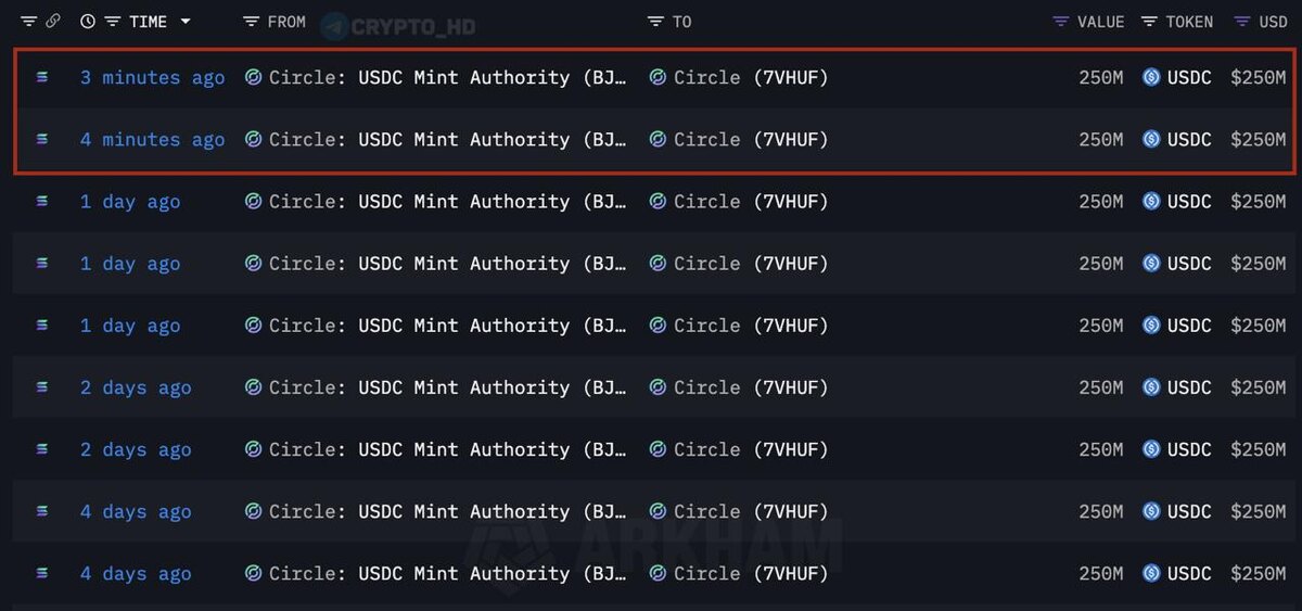 π¨ Arkham: Π Circle Π½Π°ΠΏΠ΅ΡΠ°ΡΠ°Π»ΠΈ ΡΠ²Π΅ΠΆΠΈΠ΅ 500,000,000 #USDC. Crypto Headlines