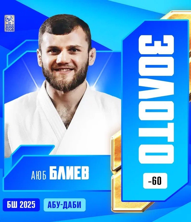 🔥 А вот и первое золото после возвращения флага российским дзюдоистам! Аюб Блиев победил на турнире Большого шлема в Абу-Даби. В финале в весовой категории до 60 кг он одолел Ариунболда Энхтайвана из Монголии. Напомним, что исполком Международной федерации дзюдо (IJF) вернул право нашим спортсменам выступать с флагом буквально накануне турнира — 27 ноября. @russian_rt_sport