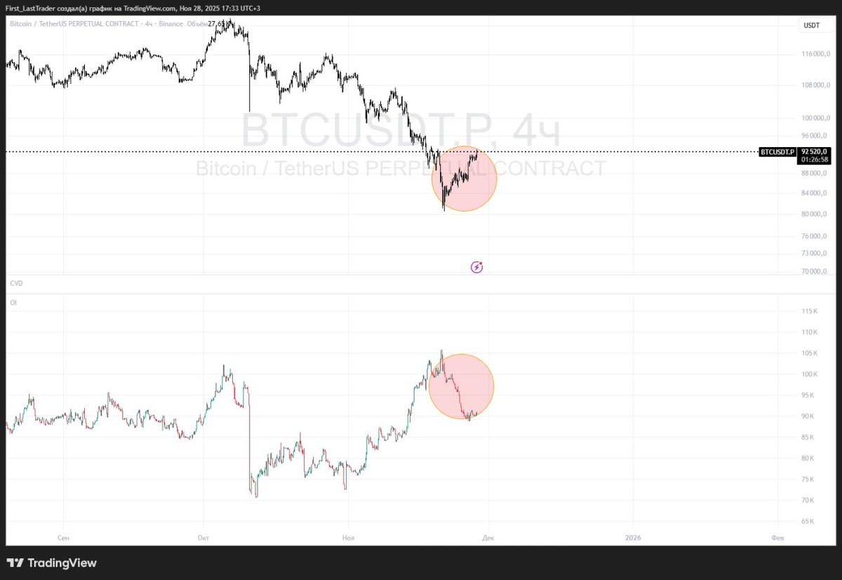 #btc https://www.tradingview.com/x/djmQlSNS/ По биткойну рост на закрытии шортов = рост на падении OI. Если никто не поддержит, будем уходить на обновление лоя.
