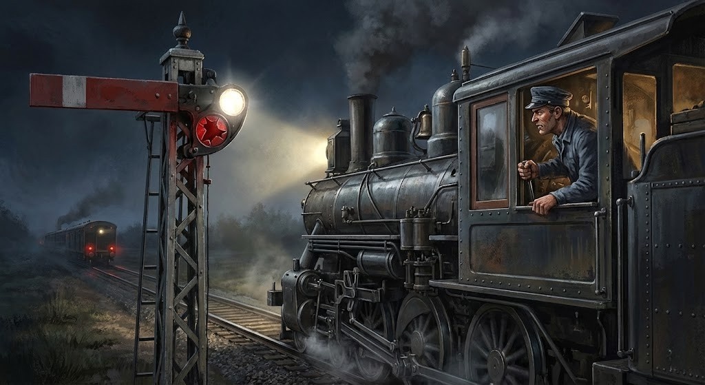 Физики скажут вам: «Красный цвет имеет самую длинную волну, его видно дальше всего в тумане, поэтому он запрещающий». Это правда, но лишь отчасти. На самом деле, выбор цветов — это результат страшной железнодорожной катастрофы, которая произошла в 19 веке. Изначально «зеленый» означал совсем не то, что мы думаем. Как было раньше? Светофоры пришли на дороги из железнодорожного транспорта. Первые семафоры в Англии работали по системе: 🔴 Красный — СТОЙ (Опасность). 🟢 Зеленый — ВНИМАНИЕ (Приготовься, сбавь скорость). ⚪ Белый — ПУТЬ СВОБОДЕН (Езжай). Кажется логичным. Белый — это цвет обычного фонаря, самый яркий и чистый. Роковая линза Проблема этой системы была в ее уязвимости. Сигнал подавался так: внутри фонаря горела обычная белая лампа (керосиновая или электрическая), а перед ней ставили цветное стекло-фильтр. Однажды ночью, примерно в 1914 году (по легенде, хотя подобные случаи был