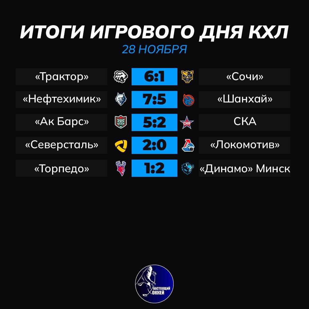 📊 «Трактор» одержал 600-ю победу в КХЛ, хет-трик Лабанка не спас «Драконов» в Нижнекамске, «Северсталь» не дала забить «Локомотиву