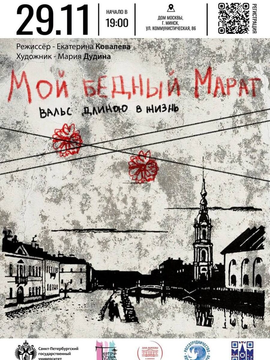 В ответ на пост Театр-студия СПбГУ выступит на выставке "Образование в России. Твой ключ к успеху" с спектаклем "Мой бедный Марат. Вальс длиною в жизнь" по пьесе известного русского драматурга Алексея Арбузова 🔴 Читайте Sputnik Беларусь в MAX