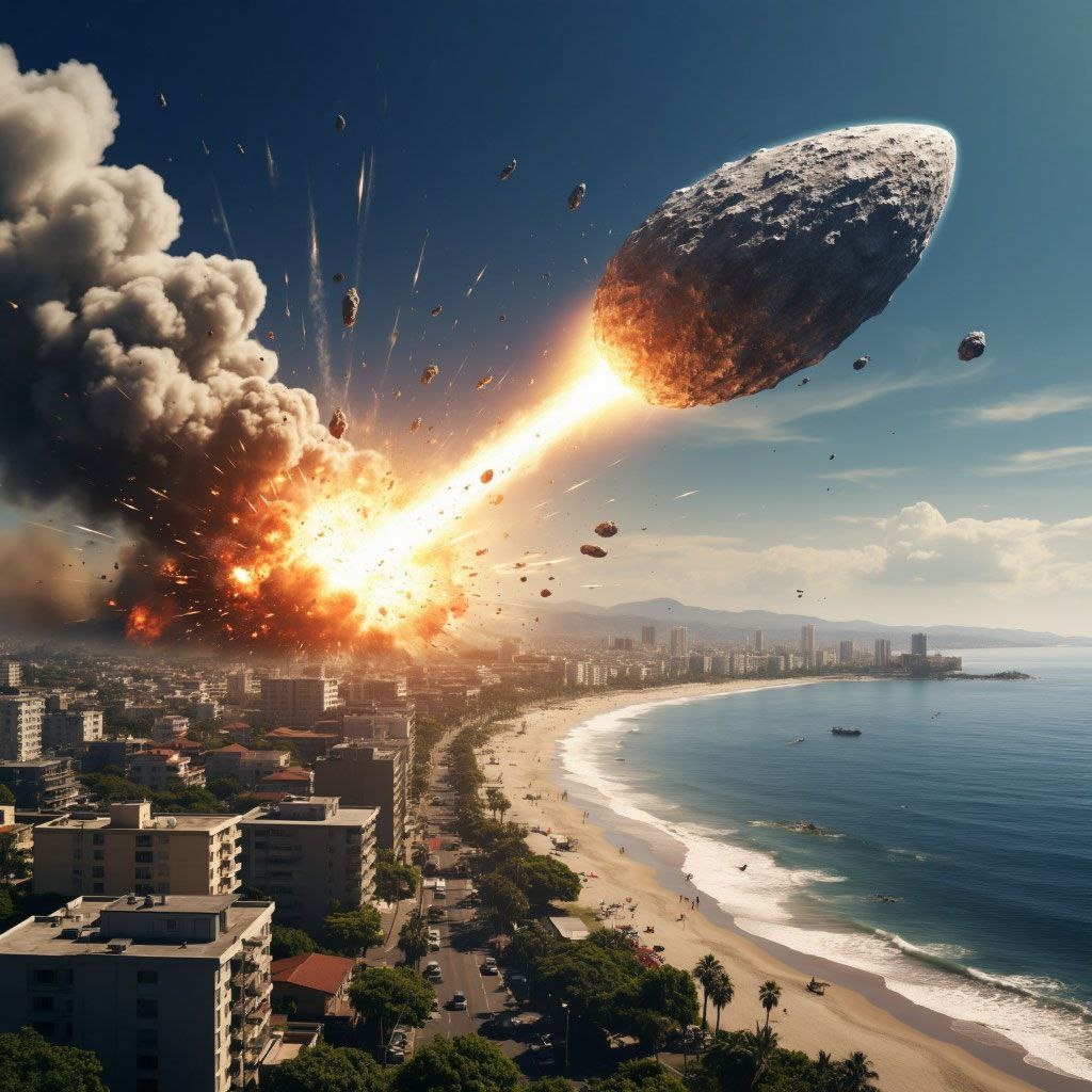 Метеорит вошёл в атмосферу под острым углом, оставляя за собой шлейф расплавленного воздуха. Он не сгорел дотла — слишком велик был. Врезался в прибрежные скалы с силой, сравнимой с ядерным взрывом.