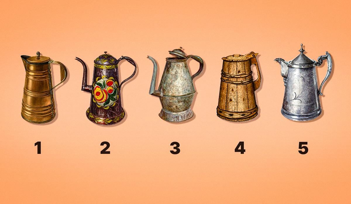 Выберите один из этих пяти чайников и узнайте, почему ваши мечты до сих пор не сбылись. Иногда нам кажется, что цели недостижимы, но за этим всегда стоят скрытые причины: размытые планы, прокрастинация, страх провала или потеря мотивации. Этот простой тест по картинкам, основанный на интуитивном выборе предмета, поможет определить, что сейчас мешает вам двигаться вперед и как это преодолеть. На картинке вы видите золотой чайник, чайник с цветочным узором, чайник с