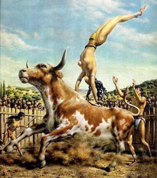А теперь посмотрим, что скрывает миф. Перед нами не что иное, как последовательная инструкция обряда инициации. Что такое инициация? Это обряд посвящения молодых людей во взрослую жизнь. Некая символическая граница перехода между детством и зрелостью. У разных народов инициация проходила по-разному, но каждый раз это было шоу, феерическое зрелище, включающее порой в себя смертельно опасные трюки. Молодых людей испытывали страхом, одиночеством, голодном, жаждой, часто физической болью, нанося раны и увечья. После этого посвящаемый символически "умирал", чтобы возродиться в новом статусе уже взрослого человека. И только тогда ему разрешалось жениться и быть равноправным членом племени. Инициации проходили в первобытных обществах, но в некоторых современных племенах эти обряды практикуются до сих пор. Были они и у индейцев Северной Америки, когда испытуемого морили бессонницей, голодом и жаждой несколько дней на жаре, пока у него не начинались галлюцинации. После этого ему присваивалось тотемное имя в зависимости от характера и содержания видения, и он считался взрослым. Были свои инициации и у наших предков. Собственно наши сказки это и есть подробный пересказ обряда посвящения. Испытуемый или испытуемая уходили в лес, символизировавший тридевятое царство, т.е. царство мертвых, и там с ними происходили странные, и, порой, даже смертельные приключения. Там был некий мужской дом, в котором всем заправлял жрец или жрица (баба-яга, пожирающая добрых молодцев, как вы уже догадались). Парни или девушки жили в этом доме некоторое время подвергаясь различным испытаниям, в том числе откровенно изуверским. Кто-то может и не выживал, а кто-то выживал, возвращался домой, имел уже право жениться и получить "полцарства в придачу". В различных частях Греции тоже были свои обряды инициации. Например, в Спарте отряд инициации проходил у алтаря Артемиды Ортии, где юношей нещадно пороли бичами. При этом нельзя было показывать, что тебе больно. Многие не выживали. Зато тот, кто выживал становился настоящей ходячей машиной для убийств - воином-спартиатом, и получал право жениться. И вот, перед нами интереснейших обряд инициации с острова Крит. Группу специально подготовленных юношей и девушек приводят к царю Крита, чтобы он дал свое благословение. Инициация длилась несколько дней и в несколько этапов. Молодые люди были достаточно физически подготовлены, но опять-таки не все пройдут испытание, а может быть кто-то даже и не выживет. Их ждёт символическое умирание и возрождение во взрослую жизнь. Встреча с быком, может даже не одним. И нужен проявить свою ловкость, смекалку, силу, сплочённость, терпение боли, чтобы выжить и получить славу и статус взрослого человека. Прямо настоящий форд Баярд древности! На праздник инициации в Кносский дворец собираются жители острова и приезжие гости может быть, даже из Афин. Сам царь присутствует лично. Девушек и юношей представляют царю. Затем под крики ликующей толпы их отводят в сам Кносский дворец. Это и есть лабиринт. Дело в том, что когда Артур Эванс раскопал Кносский дворец, он удивился обилию комнат, переходов и коридоров в нем. План дворца был настолько хаотичен, что действительно напоминал лабиринт. У инициируемых задание:самостоятельно выбраться из дворцового лабиринта. Но внимание! В одной из комнат сидит св