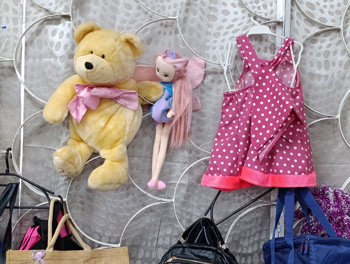 Доброго времени суток. Вчера подписчица написала мне про куклу на фото. Если честно, я на нее и не смотрела. Уже на автопилоте все делаю и особенно не присматриваюсь к игрушкам. Сегодня я все-таки ркшила посмотреть, мне все-равно в Европу надо было грунт купить. А теперь по порядку. Татьяна. №3 - рядом с жёлтым медведем кукла Барби тедди (мягкая, с крылышками),новая - дорогая игрушка, если оригинал, то качественная, на платье должно быть лого "Барби" по-английски. Вот как это выглядит. Волосы шикарные. Зашла в магазин и купила новую заколку за 150 руб. Не знаю оригинал или подделка. Я не разбираюсь. Кто знает - напишите. Любовь, спасибо Вам большое за подсказку, совет. Теперь у меня есть подарок для внучки. Кукла стоит 800 руб. Она высокая))). Я уже накупала шампунем с кондиционером куклу. Причешу, новую заколочку приколю. Останется найти упаковку. Еще я купила в секонде новый бантик. Весил он руб. на 50. Ну и попутно сделала обзор. Некоторых вещей из вчерашних обзоров (их два было)