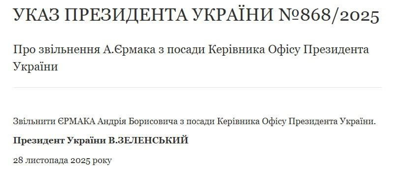 Ермак официально уволен, Зеленский подписал приказ. ИнфоСплетник ────────── ⚡️Важные новости – без лишнего шума!⚡️ Подпишись на канал и получай только суть: оперативно, чётко, по делу! 👉 ИнфоСплетник | @infospletnik