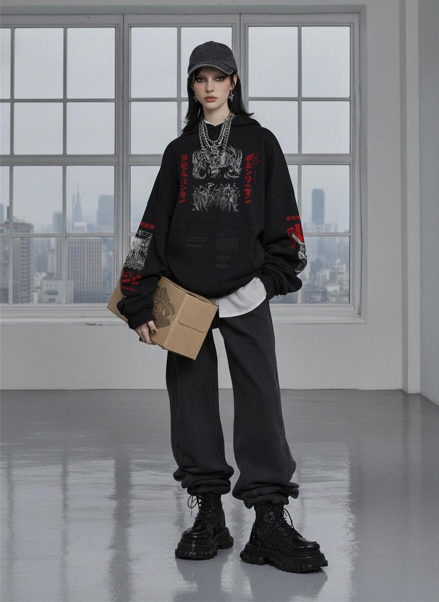 ПРЕМЬЕРА Эта часть отличается от NANA и ONIZUKA, и закрывает ещё одну линию внутри коллекции. «CHAINSAW»-часть построена на другой логике. Здесь энергия сильнее формы. Мы взяли графику, которая напоминает офисные носители — чёрно-белые сцены, красные маркерные надписи, газетные фактуры — всё, что не совпадает с офисной тишиной, но существует внутри неё. В этой части дропа: Футболка CHAINBOUND LOVE WHT Футболка STEEL CHAOS WHT Футболка CHAINBOUND LOVE Футболка STEEL CHAOS Зип-худи CHAINFURY DEMON (R) Худи NIGHTCUT EXECUTOR (SR)