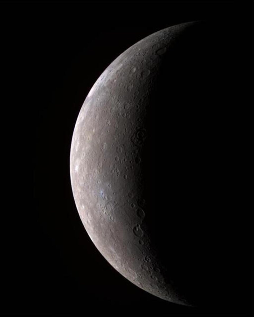 Mercury — ближайшая к Солнцу и самая маленькая планета в нашей Солнечной системе, чуть больше спутника Земли, Луны. Планета совершает полный оборот вокруг Солнца за около 88 земных дней, что делает ее самой быстрой. Ее поверхность испытывает экстремальные перепады температур — днем температура достигает примерно +430 °C, а ночью падает до –180 °C из-за отсутствия атмосферы, способной удерживать тепло. Не смотря на близость к Солнцу, Меркурий не является самой горячей планетой — это звание принадлежит Венере из-за её плотной и токсичной атмосферы. Интересно, что в полярных кратерах Меркурия есть испарения водяного льда в условиях постоянного затенения.